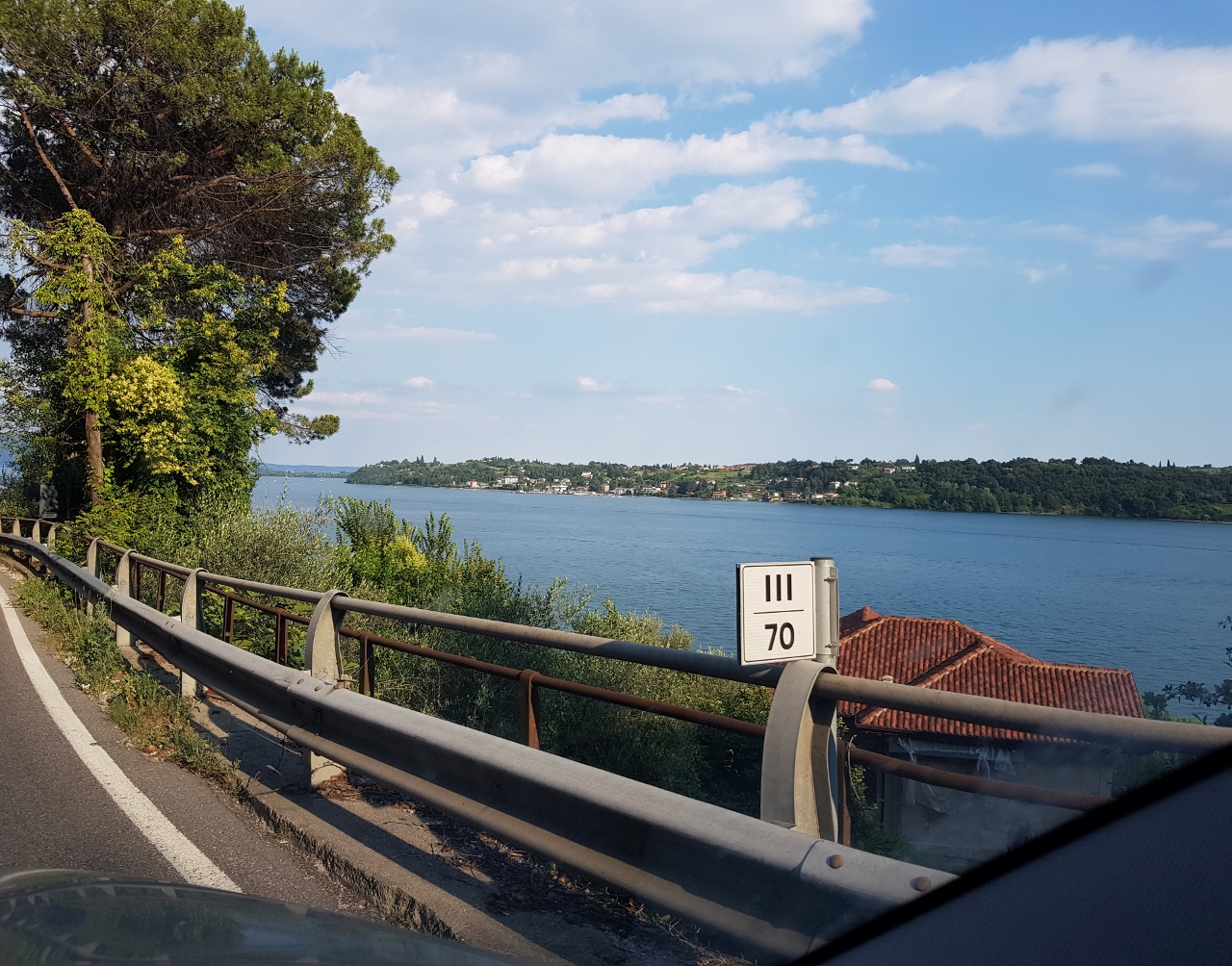 Alle 18,30 siamo quasi a destinazione, sulla statale che costeggia il lago c’è un po’ di traffico, serve un’altra mezz’oretta.