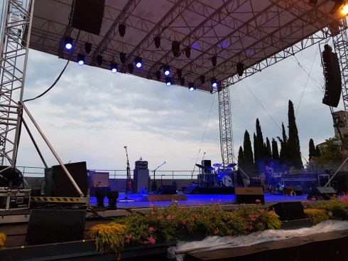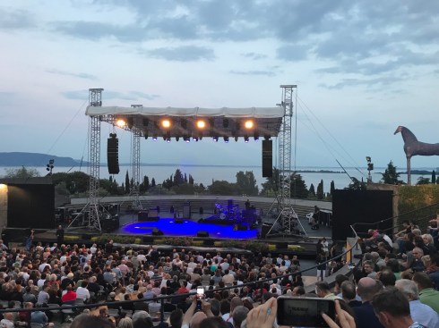 L’anfiteatro è molto carino, l’atmosfera perfetta: il tramonto, il Lago di Garda e pini e cipressi a far da cornice. Il posto tiene 1500 persone, l’ideale per assistere come si deve ad un concerto.