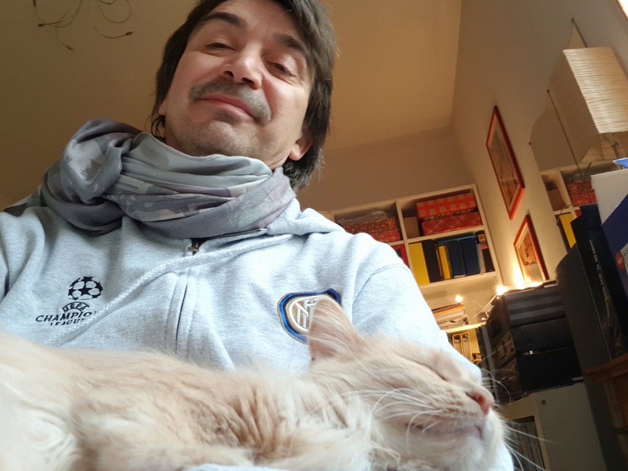 L’interazione che ho con lui mi sorprende ancora oggi, dopo quasi sette anni di convivenza. Polly dice che è molto intelligente, io non lo so, magari tutti gli umani pensano che il loro gatto sia speciale, è indubbio però che Palmiro abbia imparato alla perfezione come si vive con degli umani, e abbia ben presente l’amore e l’amicizia che lo circonda. Ci si capisce al volo, la fiducia che ha nei nostri confronti è totale e noi crediamo di averlo cresciuto nella maniera giusta. Siamo fieri di lui. Spietato (ma senza perdere la tenerezza) con gli altri maschi che vogliono invadere i territori della Domus Palmirea, tollerante e ben disposto con i felini che riconoscono la sua posizione, il suo ruolo.