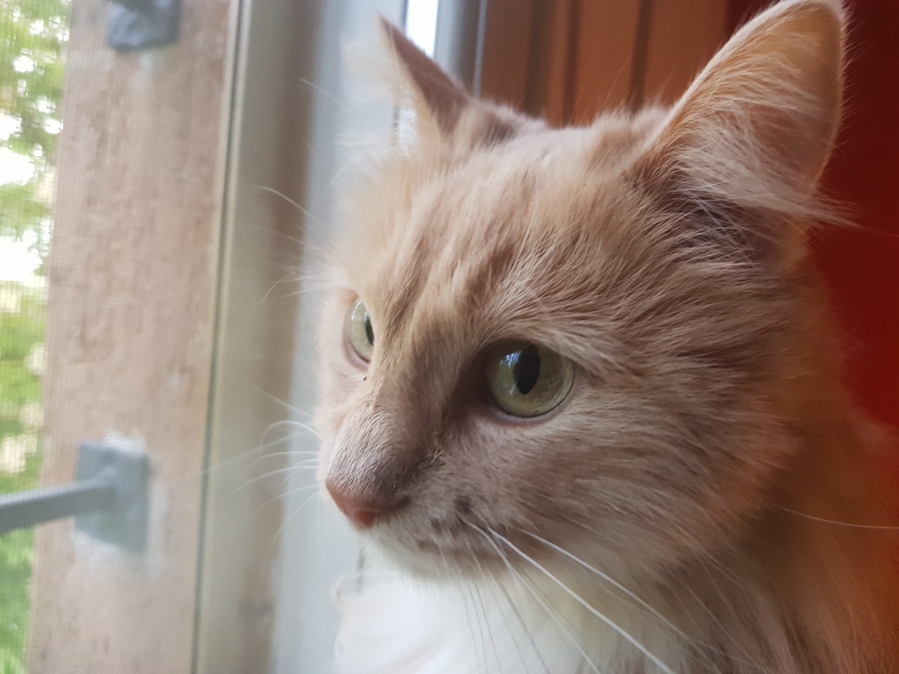 E’ una gattina un po’ instabile, non sai mai cosa vuole, ma non dispero di smussarne i disturbi dovuti ad una infanzia molto difficile. Io ne sono innamorato, e a suo modo, credo che anche lei lo sia di me. Quando sono a casa, spesso mi cerca, quando mi vede qui al computer a scrivere per il blog viene da me, guarda fuori dalla finestra,