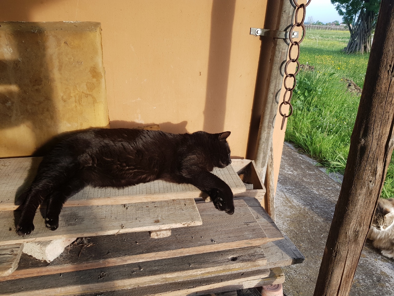 Palmiro è specializzato nel mettersi in sintonia con il mio animo. Gli è sufficiente uno sguardo per inquadrarmi, sente che ho il blues e si adegua anche lui. Quando vado a cercarlo invece di trovarlo intento a vagabondare in mezzo alle vigne che circondano la Domus Saurea, lo trovo dietro al garage sdraiato su un asse di legno.