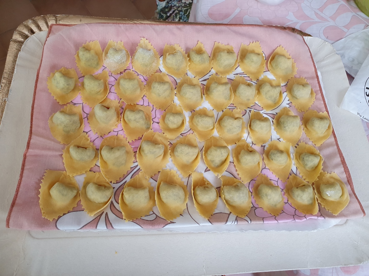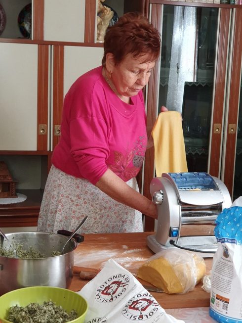 Torna prepotentemente l’Emilia quando il giorno dopo mi fermo dalla madre della pollastrella, la Lucy, e lei mi regala una cabaret di tortelloni fatti sul momento …