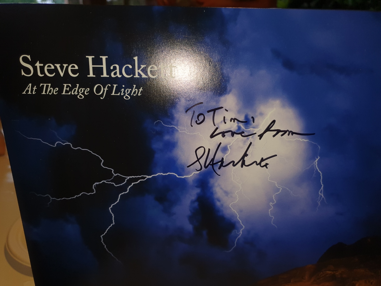 sino a quando non mi porge un regalo. La settimana prima è stato a Malta con la sua groupie a vedere un concerto di Steve Hackett. Hanno il pacchetto Meet & Greet, così acquistano una copia in più dell’ultimo album dell’ex chitarrista dei Genesis e richiedono una dedica a mio nome. Beh, quando uno ha degli amici così il blues se lo fa passare.