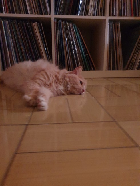 Stricchi ogni tanto si annida tra i miei vinili, ne sceglie uno e lo fa cadere per terra, vinile che poi io metto sul piatto. Credo che inizi a capire che una delle magie che sanno fare gli umani è far uscire dell’aria sonora dalle quelle due torrette che chiamano casse. Ancora non riesco a capire se le piace o no, di certo è incuriosita.