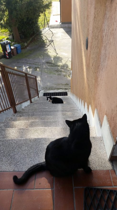 Una brutta mattina il gatto Patuzzo fece un incontro che gli fu fatale ( qui la triste storia https://timtirelli.com/2016/01/12/il-gatto-e-la-volpe-storia-di-vita-e-di-morte/ ) e fu così che il gatto Artemio iniziò a stazionare stabilmente, la notte, nei dintorni della Domus. Dapprima Palmiro non lo vedeva di buon occhio, ma quando Artemio si sottomise a lui, Palmiro ebbe il buon cuore di accoglierlo nella colonia.