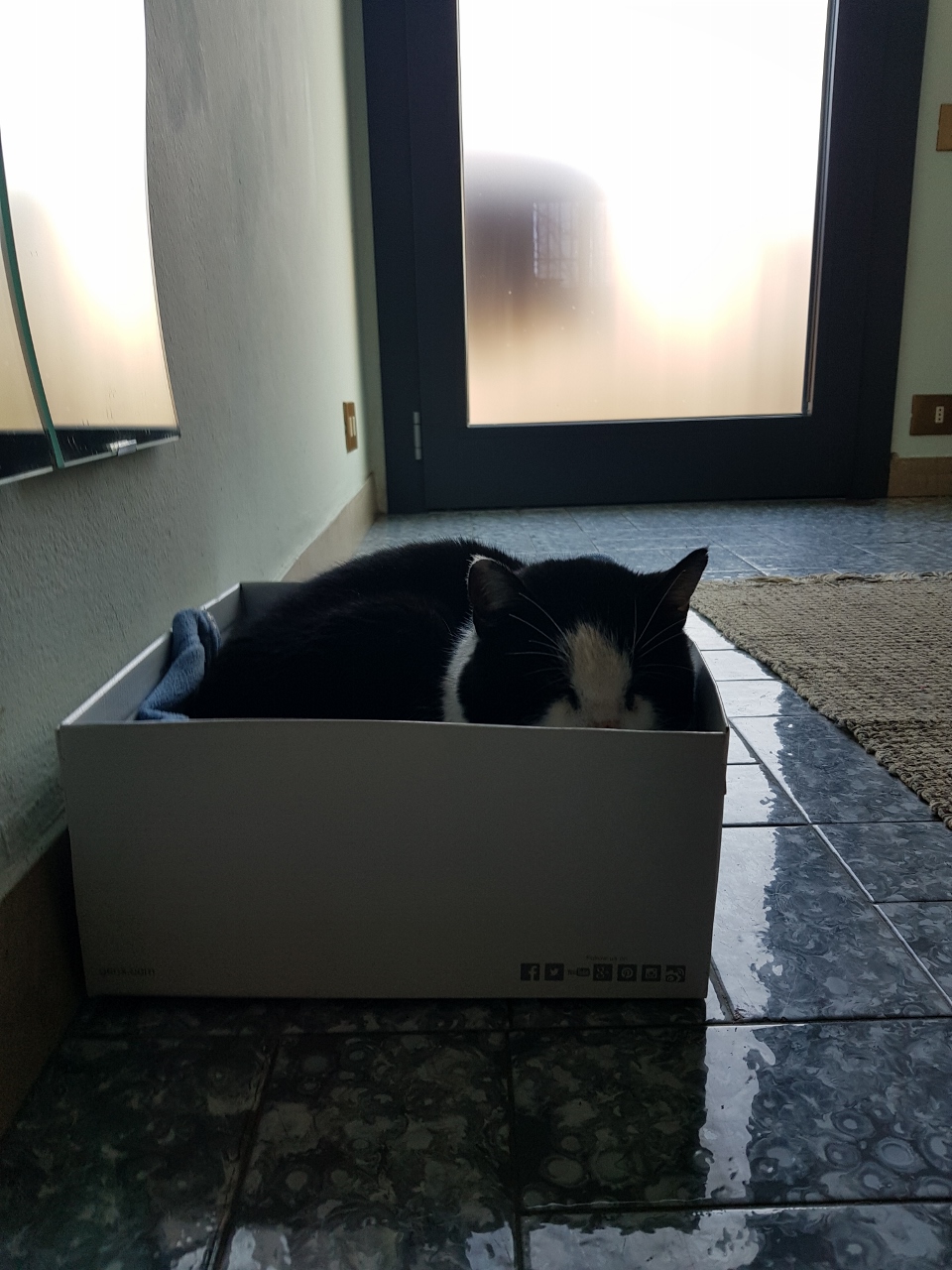 In questi ultimi giorni abbiamo cercato di farlo mangiare e bere in ciotole apposite, per evitare problemi agli altri nostri 5 gatti, e di tenerlo un po’ lontano dalla vita felina della Domus, spero ci abbia perdonato.