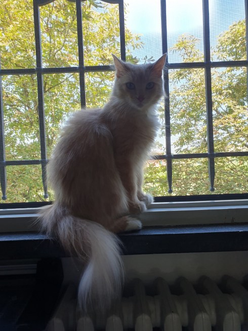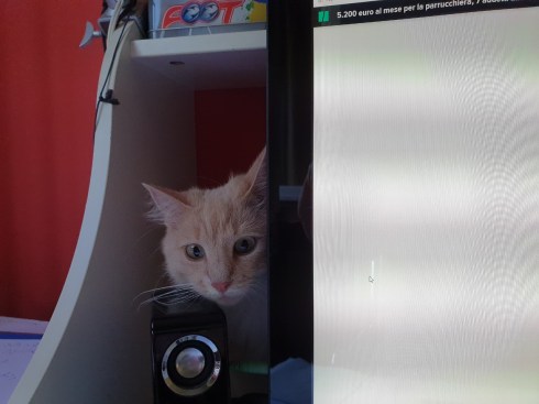 Strichetto, la mia bella pussycat, lo copia, sale sulla finestra vicino alla scrivania e mi contempla.