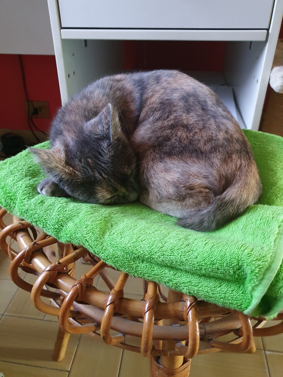Stricchi la abbiamo data per un paio di settimane ad una amica, con Minnie in queste condizioni sarebbe stato troppo pericoloso averla qui visto che la Stricchi ha l’istinto del killer verso le altre gatte, soprattutto la MInnie appunto.