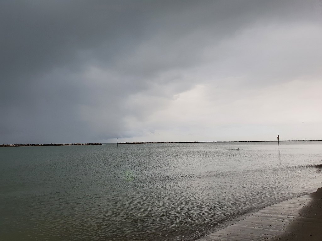 L’indomani la giornata è splendida, il mare è una meraviglia, quello che frega la riviera Adriatica è la sabbia scura del fondale, vi fosse quella bianca l’effetto a volte sarebbe quello della Sardegna