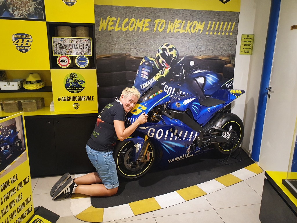 Puntuale serata a Tavullia a rendere omaggio a Valentino Rossi. In ginocchio davanti alla Yamaha con cui Vale vinse la sua prima gara con quel brand motociclistico al GP di Welkom in Sudafrica,