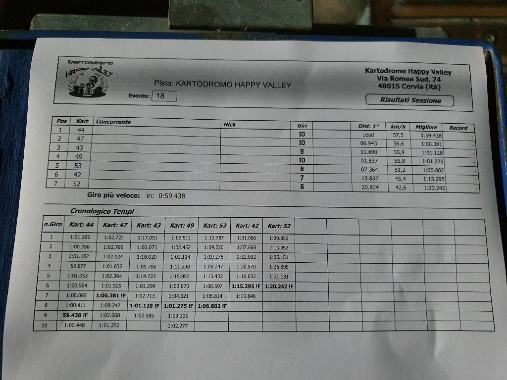 Non potevano mancare le puntate al Kartodromo Happy Valley di Cervia. Due serate, quattro gare, quattro vittorie di Saura. Dopo due anni che non correva in kart. Non finisce mai di sorprendermi. Stavolta non ci sono femmine in gara, solo maschi, e lei li batte tutti, sempre! Sono parecchi anni che veniamo da queste parti, l’ho portata all’Happy Valley spesso, quante gare avrà fatto qui, 20? 25? in due/tre occasioni è arrivata seconda, in tutte le altre prima.