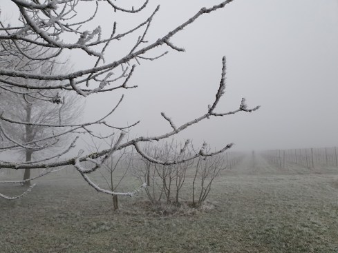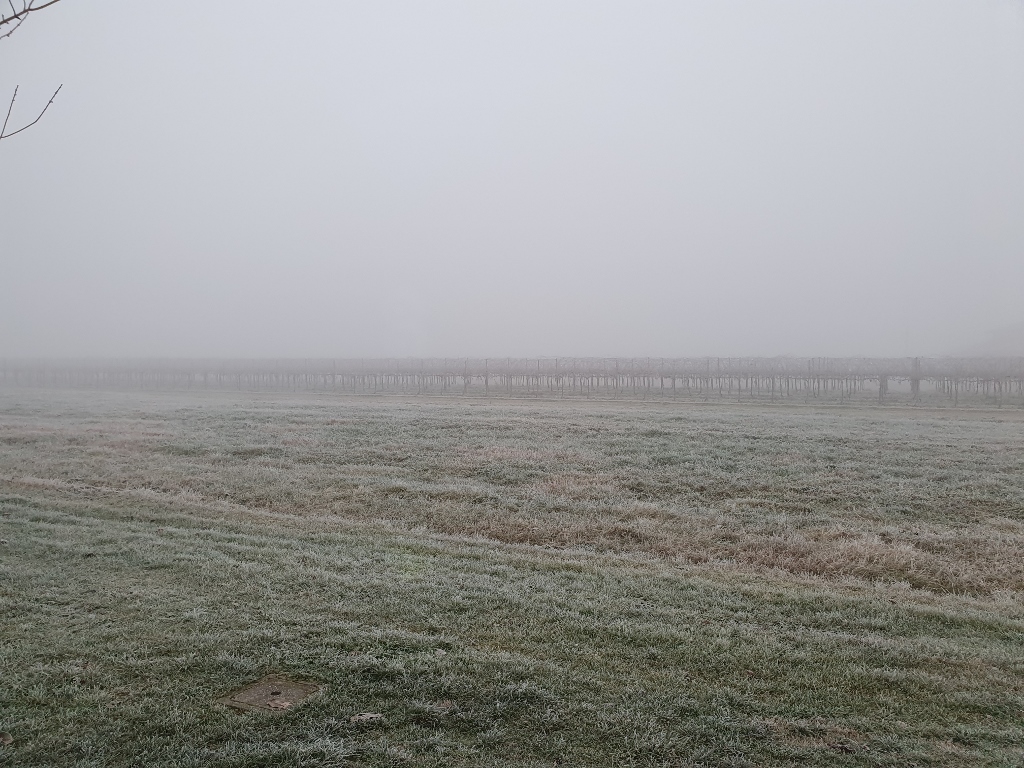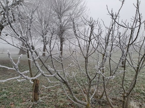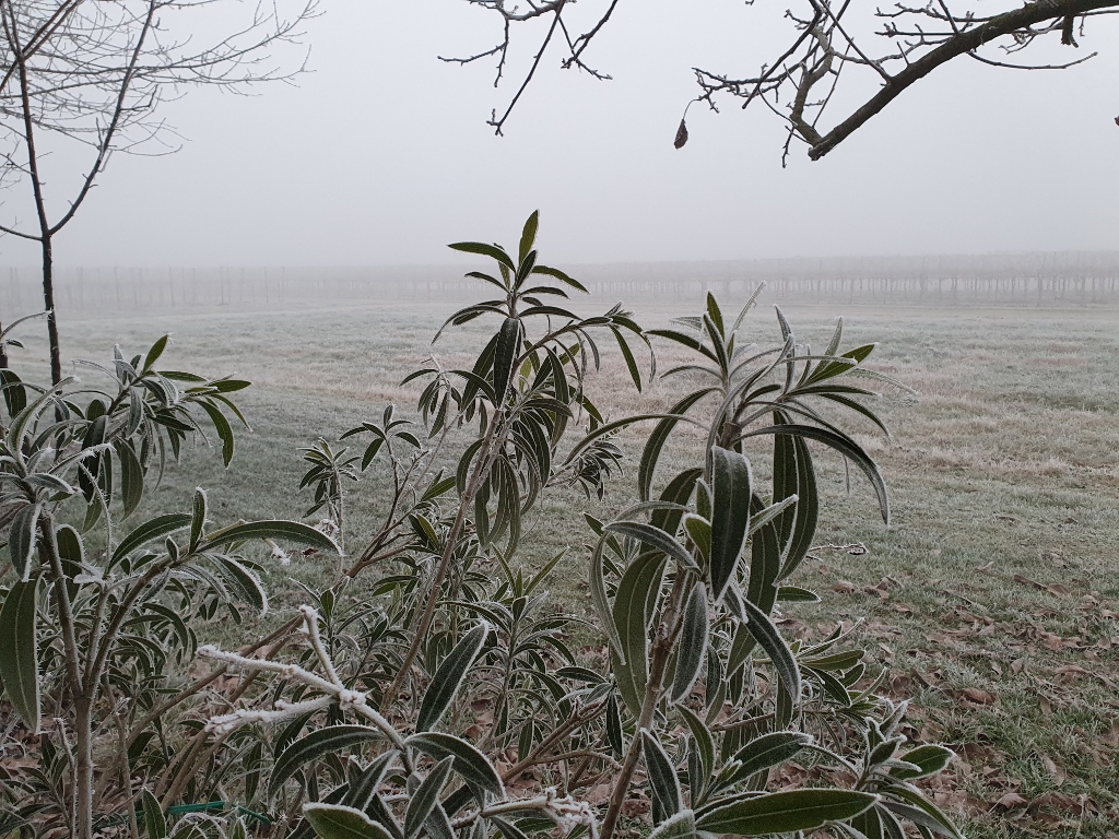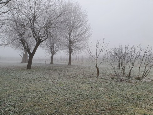 Tra la nebbia cammino nei campi, ad ogni passo il cric croc dell’erba,