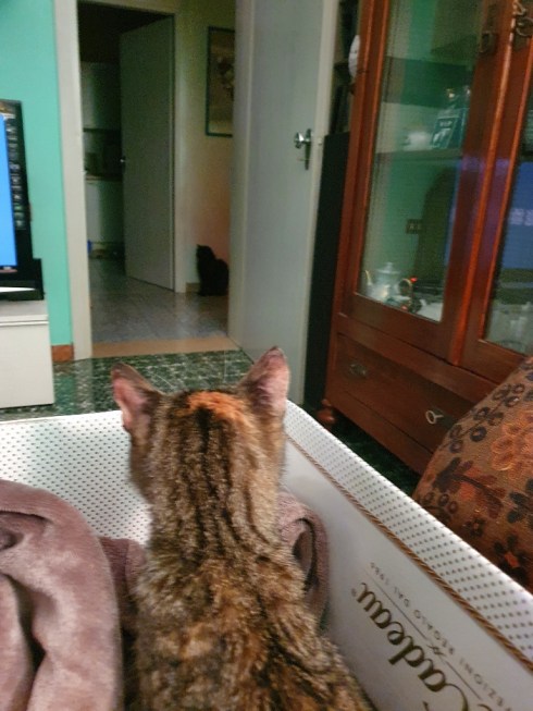 I randagi Ozzy e Rossignol – Palmiro permettendo – stazionano davanti alla porta in attesa del cibo (che puntualmente gli viene servito). Insomma, solite storie di ordinaria gatteria.
