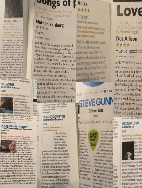 Questa mania di recensire solo “capolavori” la trovo insopportabile, non aiuta minimamente a muoversi nella miriade di nuove uscite. Sarebbe equivalente a stroncare tutto. Da una parte tanti “capolavori” sono roba fritta e rifritta, e forse va bene, ci siamo detti tante volte che non è dal rock che ora ci si può attendere la novità. Ma anche negli altri generi io ho difficoltà a trovare qualche punto di riferimento, per capire se può valere la pena avventurarsi in un ascolto oppure no. A me, in passato, è capitato diacquistare un disco alla cieca dopo aver letto una recensione che era riuscita ad incuriosirmi; oggi però mi chiedo: sono io che con l’età son più difficile da convincere e ammaliare o è che quando ci provo fa a finire che al terzo minuto stacco tutto? Per l’appunto voglio fare un tentativo con questo Steve Gunn (è anche tra le recensioni che hai fotografato)…. stiamo a vedere che succede.