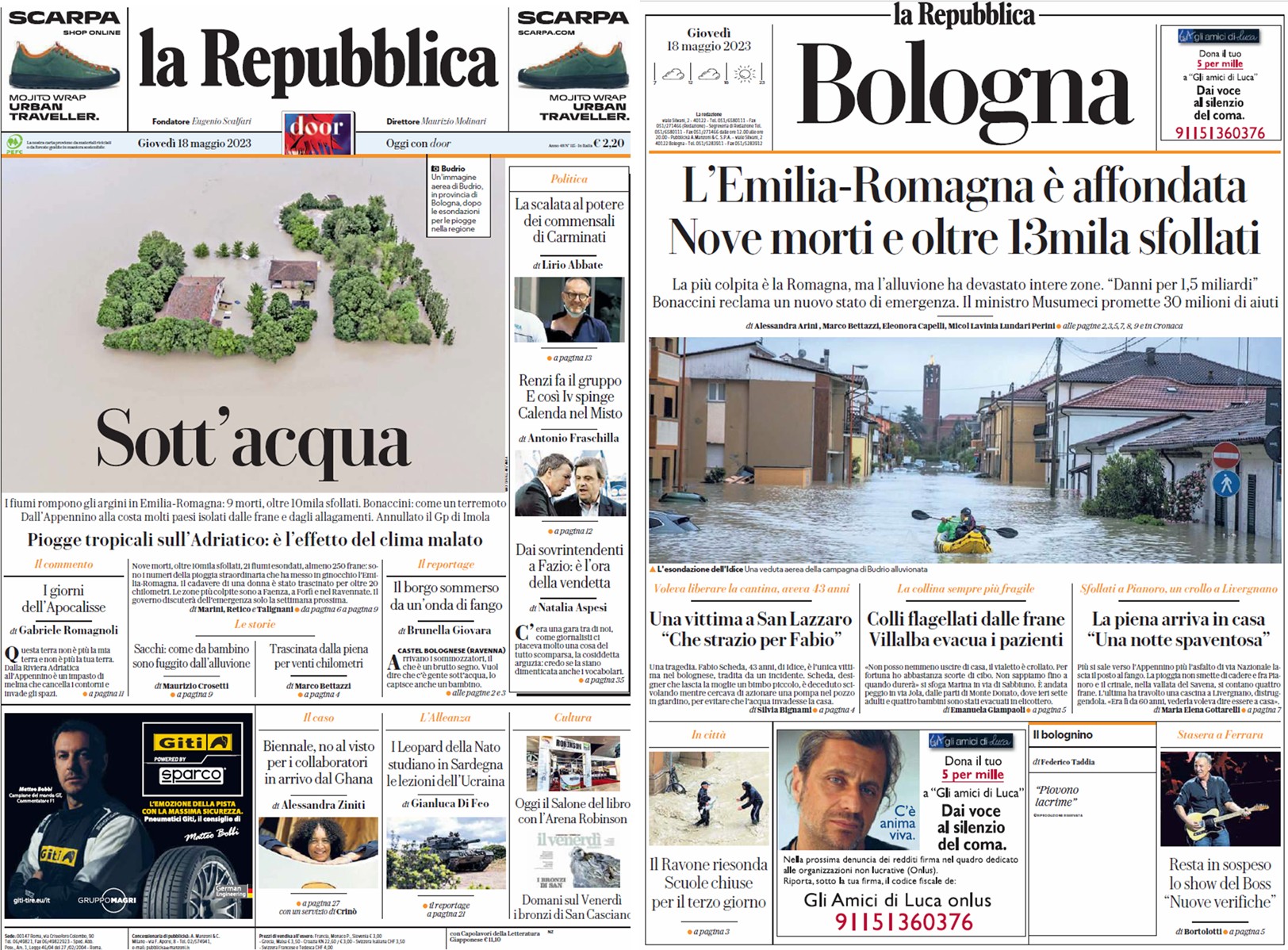 Quello che indispettisce un po’ sono i luoghi comuni che sento in giro da più parti, spesso detti per colpire e criticare le amministrazioni della regione, in massima parte da decenni della stessa colorazione (seppur ormai sbiadita) politica. Ovviamente è sempre possibili fare di più e fare meglio, ma se vi è un problema legato alla cura del territorio, della rete idrica, alla mancanza di bacini di raccolta è soprattutto nazionale e non certo (solo) nostro; il fatto poi è che in 15 giorni è caduta la pioggia che di solito cade in sei mesi, su un territorio di pianura già imbibito (come diciamo noi…fradicio) su cui inoltre si sparge l’acqua piovuta sugli appennini che poi scende qui al piano. Il terreno non assorbe più e l’acqua si riversa nei fiumi che non riescono a contenerla tutta. Sono i cambiamenti climatici, quelli che una certa colorazione politica snobba da sempre se proprio vogliamo dirla tutta; tra l’altro sentire le dichiarazioni di cordoglio di quei personaggi che minimizzano o addirittura negano il surriscaldamento globale e la crisi climatica mi fa vomitare, che razza di ipocriti, che politici di melma per dio! Se dopo mesi di siccità arrivano piogge senza fine…il disastro è garantito. Possiamo criticare chiunque, ma un po’ di buon senso e onestà intellettuale non guasterebbe. L’articolo qui sotto spiega le cose in maniera molto chiara.
