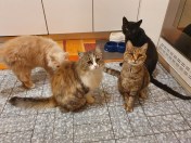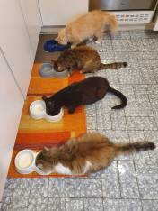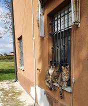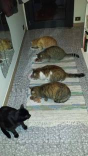 L’anno dopo diede alla luce lei stessa quattro cuccioli: Muffa (maschio), Patuzzo, Spaventina e Ragnatela (detta Ragni). Muffa sparì dopo un anno circa (viviamo in campagna e i pericoli per i gatti sono dietro l’angolo: cacciatori, volpi … financo lupi), Patuzzo se andò qualche anno fa ucciso da un canide (appunto), mentre Spavve e Ragni vivono ancora con noi. Raissa ad ogni modo divenne la matriarca della Domus, svezzò i suoi figli, accolse Palmiro come un figlio, fece lo stesso con le due randagie che finirono per accasarsi da noi, Stricchi e Minnie, e in pratica con tutti i vari gatti che ad anni alterni si accasavano per un po’ da noi.