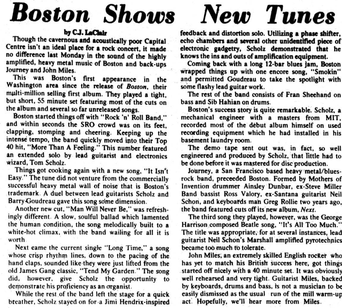 Recensione concerto 1977 BOSTON- JOURNEY-JOHN MILES