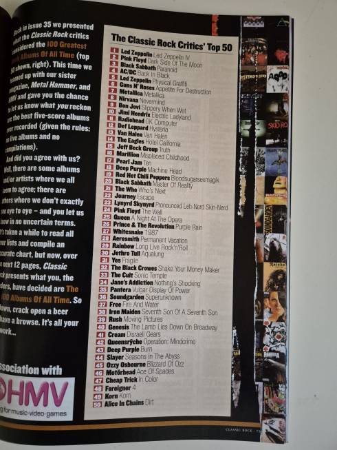 _La classifica dei migliori album tratta da Classic Rock Uk n.46 novembre 2002