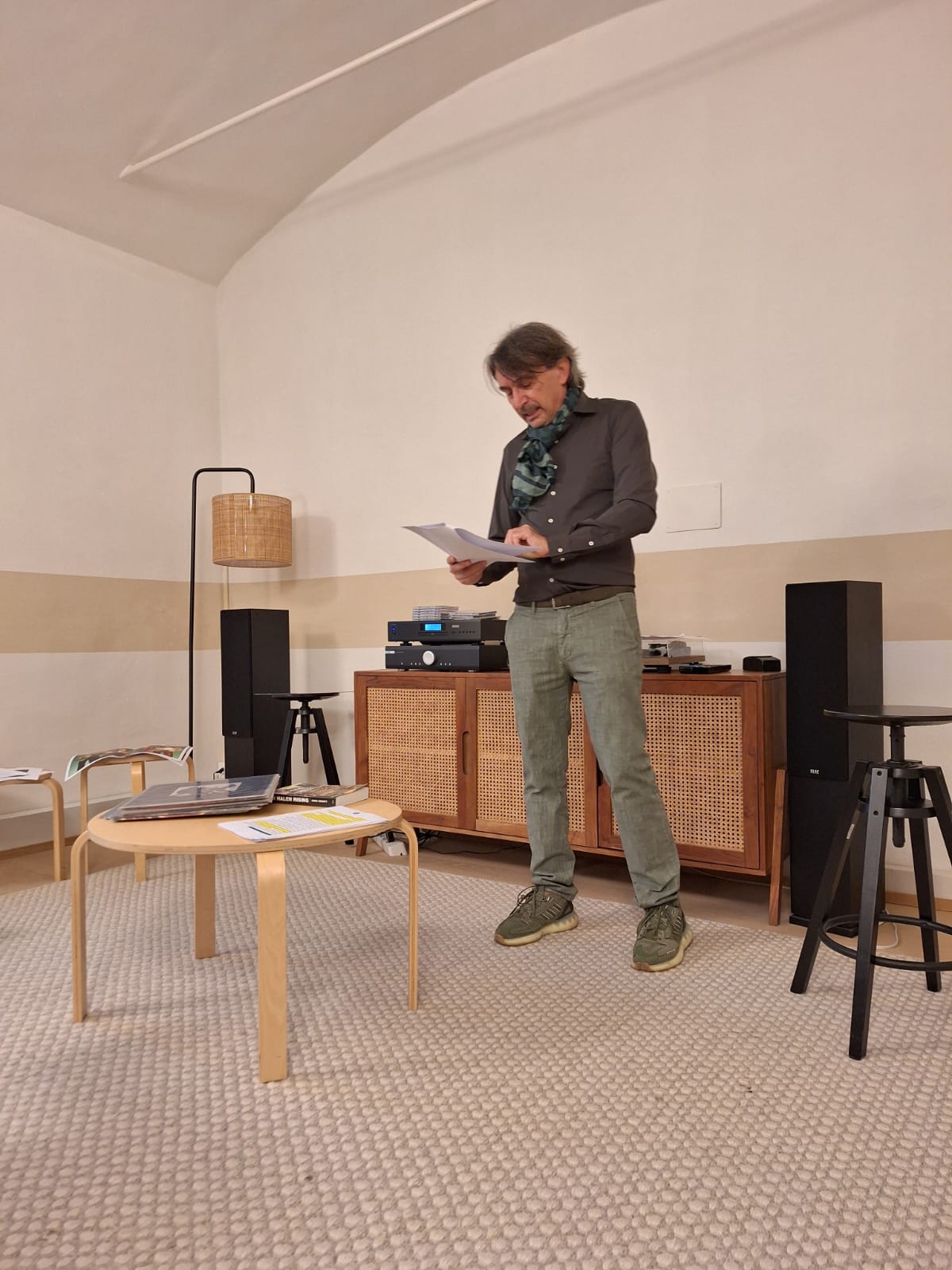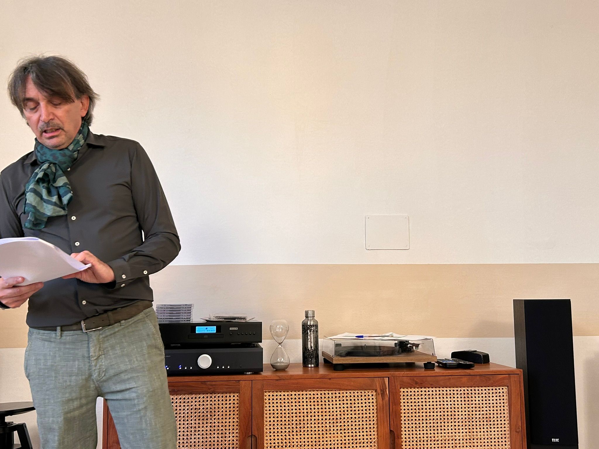 Mi prendo una mezz’oretta prima dell’inizio per raccogliere i pensieri, immergermi nella silenziosa sala vuota e preparare ellepì e cd.