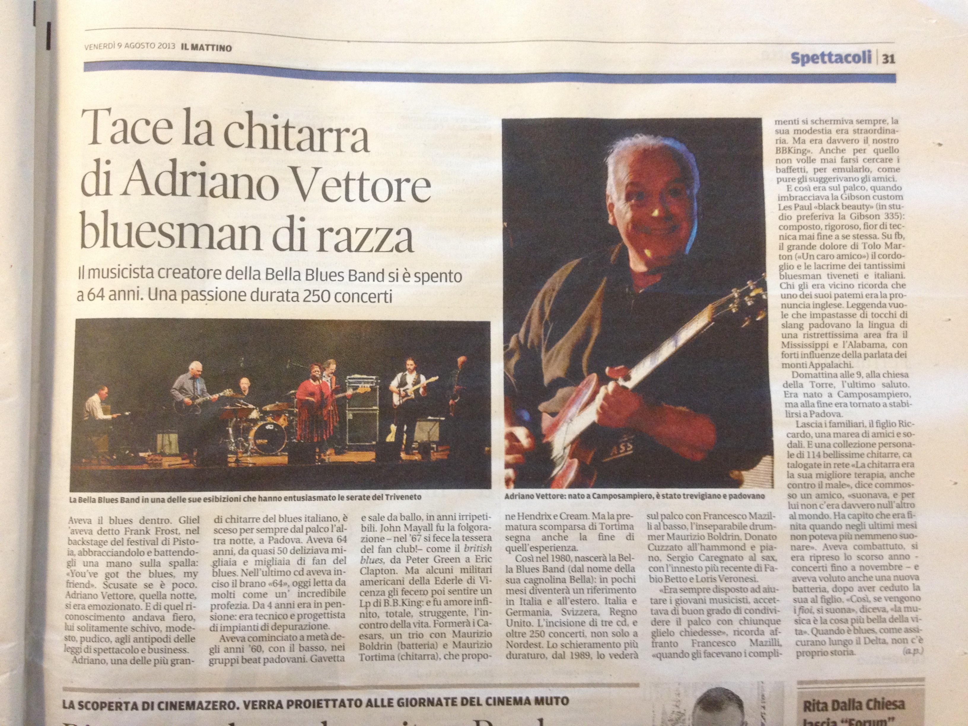 Prima di congedarmi la zia bionda mi prende da una parte e mi sussurra con discrezione (incerta se darmi del tu o del lei) “Veh, continui così, che è la perfezione”, e prima che la groupie esca dalla porta le confida “il tuo ragazzo mi piace troppo, mi piace proprio tanto tanto…” , evidentemente gli uomini di blues piacciono a certe zie. Ah, zia bionda, I love you.