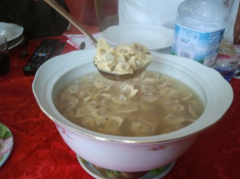 Primo dell’anno dai genitori della groupie: la Lucy prepara un pranzo dei suoi: tortelloni, cappelletti, arrosto & manzo, coniglio, tortelli dolci, torta, frutta fresca, frutta secca, lambrusco, spumante dolce, caffè, grappa. I piatti d’ordinanza della festa (di vari decenni fa), copritovaglia rosso, dialetto stretto…