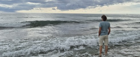 Cammino sul bagnasciuga in questo mercoledì di inizio settembre, il colore cobalto chiaro del cielo si fonde con quello del mare, quest’ultimo però a tratti scopre squarci liquidi color ottanio. Sono qui per qualche giorno di vacanza sulle coste occidentali del Mare Nostrum, il tempo varia in fretta, un’altalena di nuvole bellissime e di sole deciso mentre il mare rimane irrequieto, come me. L’acqua è purissima, immergersi in essa è ogni volta come un battesimo laico, ogni volta che risalgo dalle acque mi illudo di essere un uomo nuovo. Contemplo queste vastità d’acqua e d’aria con il mio solito fervore, un insieme di sentimenti al galoppo che mi trascinano chissà dove.