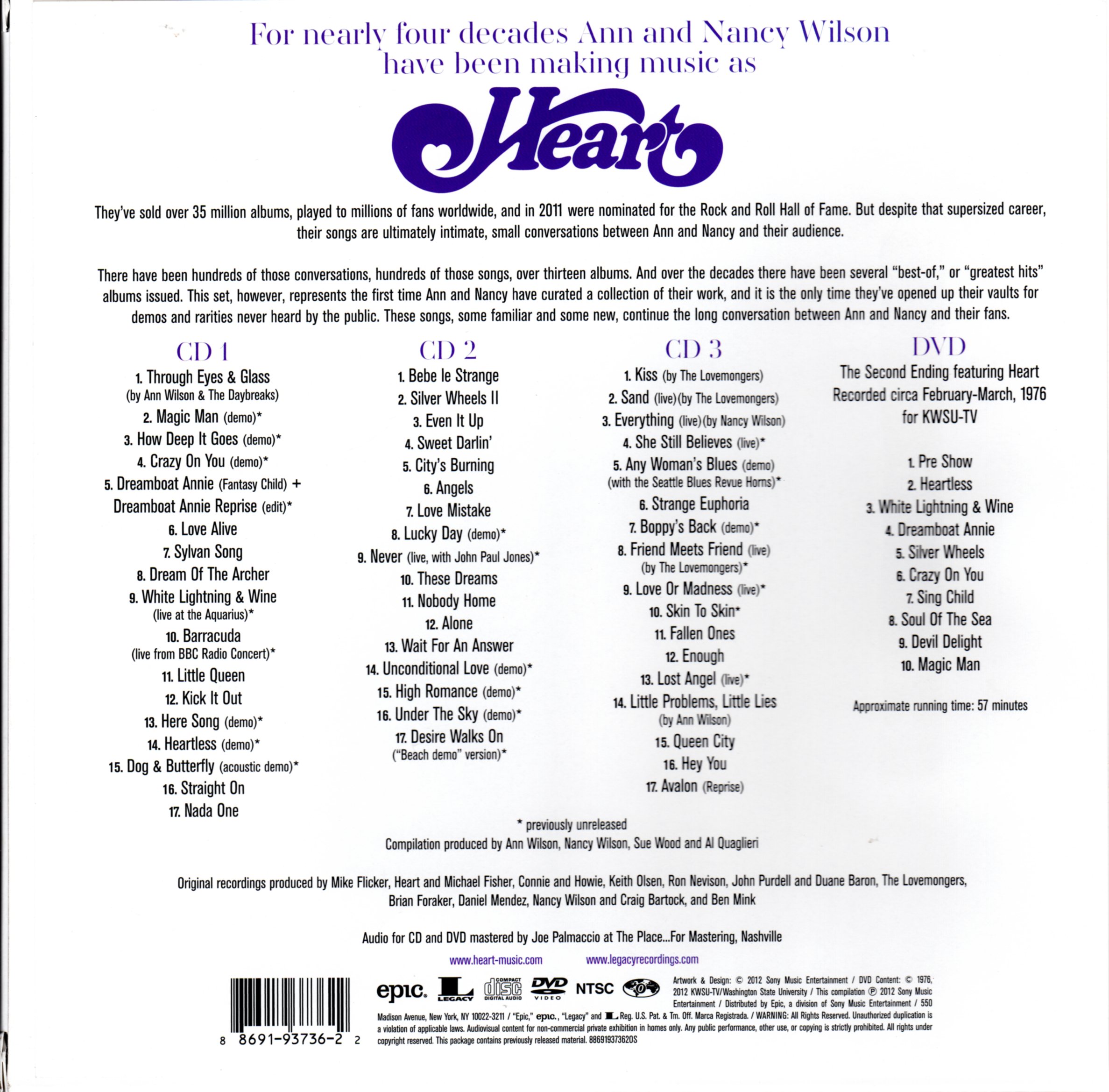 Il disc one è un discone, e inizia con la prima registrazione in assoluto di ANN, siamo nel 1969 e il brano non è davvero niente male. Flauto e atmosfere misteriose. Il resto rappresenta gli HEART degli anni settanta, atmosfere deliziose, rock vero, bel songwiting. DREAMBOAT ANNIE, BARACCUDA, DOGS & BUTTERFLY…