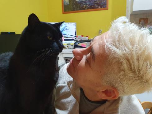 La piccola Minnie, giunta per caso qui alla Domus tre anni fa, continua a mostrare gratitudine e amore incondizionato per il suo umano di riferimento. Tutte le sante notti mi sale sul petto mentre sono a letto a leggere per poi rannicchiarsi sotto al mio mento una volta spenta la luce. Il nostro è un rapporto d’amore puro, quello che talvolta nasce tra mammiferi di specie diverse.
