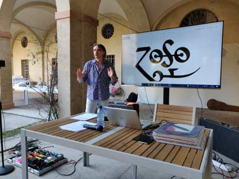E infine ho preferito far loro toccare con mano cos’è il vero senso del rock. Non potendo portare la band con me (siamo in centro storico, in un contesto protetto dai beni culturali) ho portato comunque con me la Les Paul e il Marshall per far “vivere” ai miei colleghi uno degli strumenti del rock. Ho preferito pormi in maniera schietta, e sopra le righe, ho voluto lasciarmi trasportare dalla mia emilianità, perché è vero che il rock è anche profondità, commozione e intelletto, ma di sicuro una fetta importante del suo fascino è data dal battito primordiale e dallo lo scambio di energia, il Rock è un ballo da strappamutande, è cantare l’Hare Hare e ballare l’Hoochie-Koo.