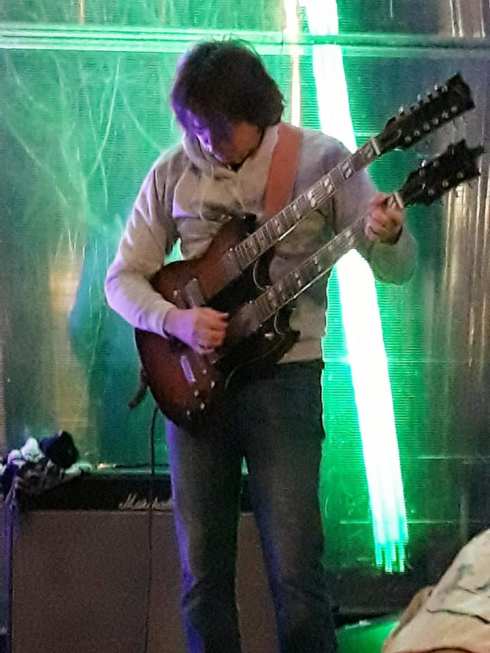 Non facile per Saura replicare il giro del basso fretless (senza tasti insomma) che usò a suo tempo Tony Franklin, ma con l’aiuto di qualche effetto a pedale il risultato è comunque ottimo, d’altra parte è una gran musicista, ci salta sempre fuori … stasera nella presentazione l’ho anche chiamata “la Hermione Granger di Gavassa” visto che mette sempre un po’ di magia in quello che fa.