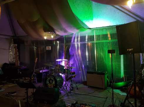 Yurj decide di farci suonare nella dépendance esterna, noi naturalmente siamo più che d’accordo, visto il nostro armamentario per noi è d’obbligo preferire uno spazio consono alle nostre esigenze.
