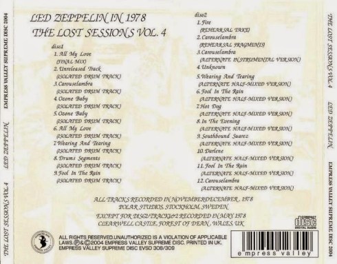PS: Esiste un versione più lunga di Darlene contenuta nei bootleg dedicati alle session di fine 1978. Si tratta di una alternative half-mixed version, con un finale più lungo, con ulteriori interventi di Plant e di Page. Molti di quelli eseguiti da Plant non compaiono nella versione finale.